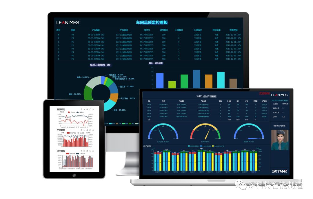 深科特LEAN MES精益制造执行系统基于流行的底层架构,松耦合,敏捷交付的模块化设计理念,可根据不同行业和企业管理需求进行灵活配置,融合生产管理、质量追溯、品质管控、设备监控、数据报表等功能,为生产多部门提供系统的车间管理信息服务。通过强调制程整体优化实现智能生产管理。产品方案广泛应用在3C电子、通讯电子、汽车电子、军工电子、医疗电子、机械加工、光电技术等各个离散制造行业。